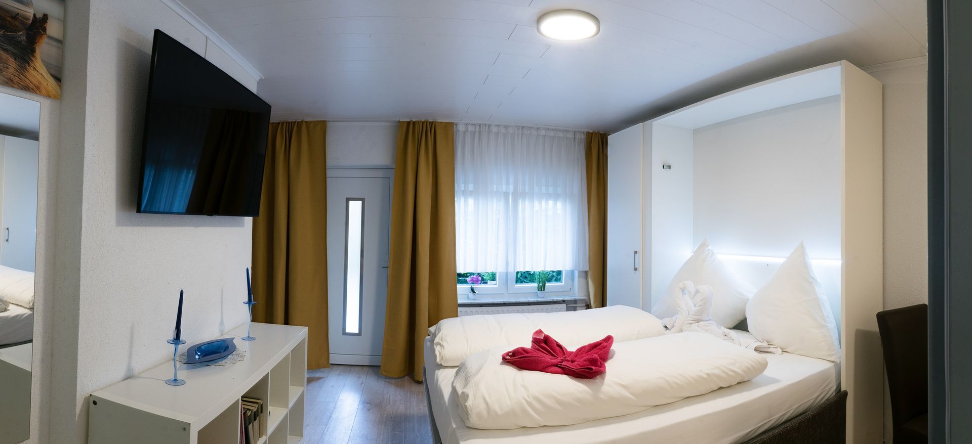 Whether you're coming to Darmstadt for a weekend or a whole week, you'll feel right at home in our apartment building. Our 14 apartments offer superbly equipped studios that will make your stay in Darmstadt even more enjoyable. All of our studios, including our penthouse apartment, are individually furnished and, in many ways, offer more spacious amenities than a hotel. Why not combine your stay with a visit to the nearby Jugendstill wellness oasis or one of the numerous exclusive restaurants in the immediate vicinity? The surroundings of our studios and apartments, located in the city center, will make your stay in Darmstadt an unforgettable experience.