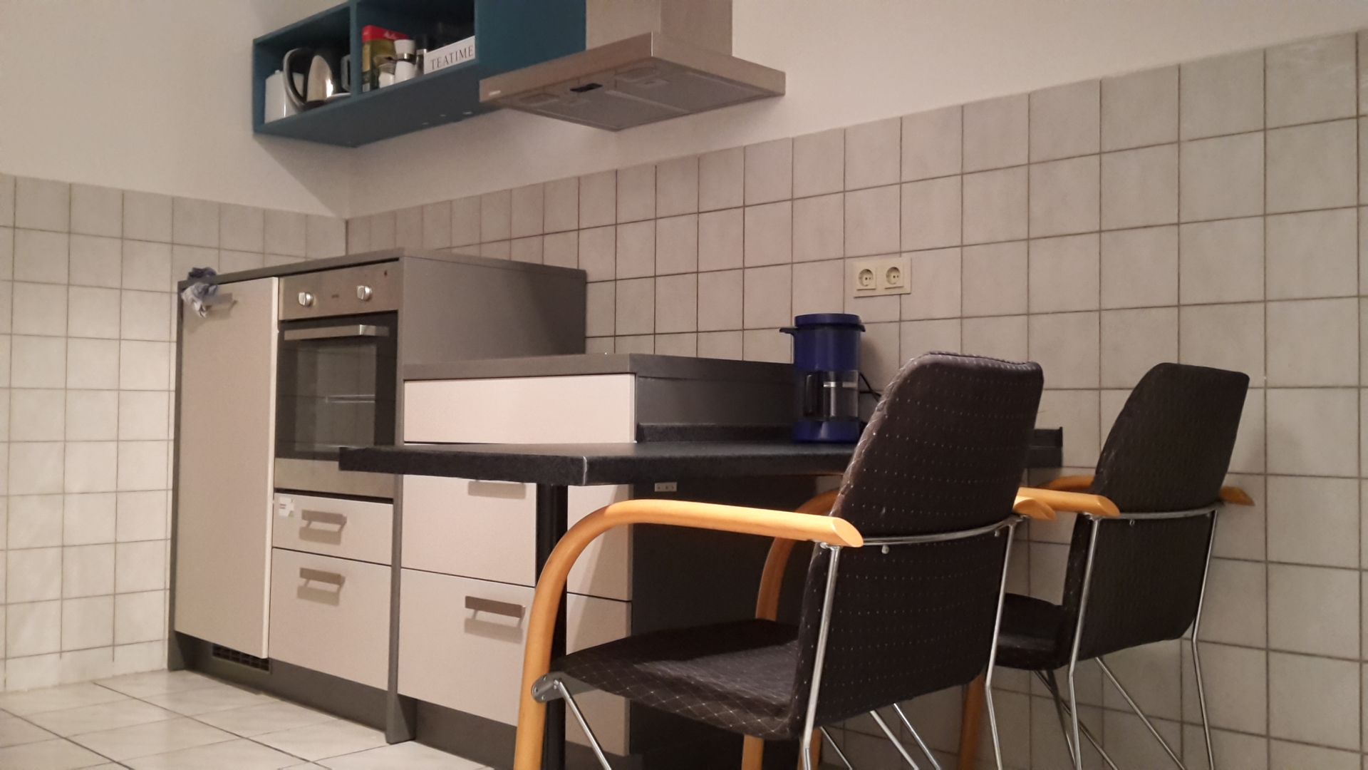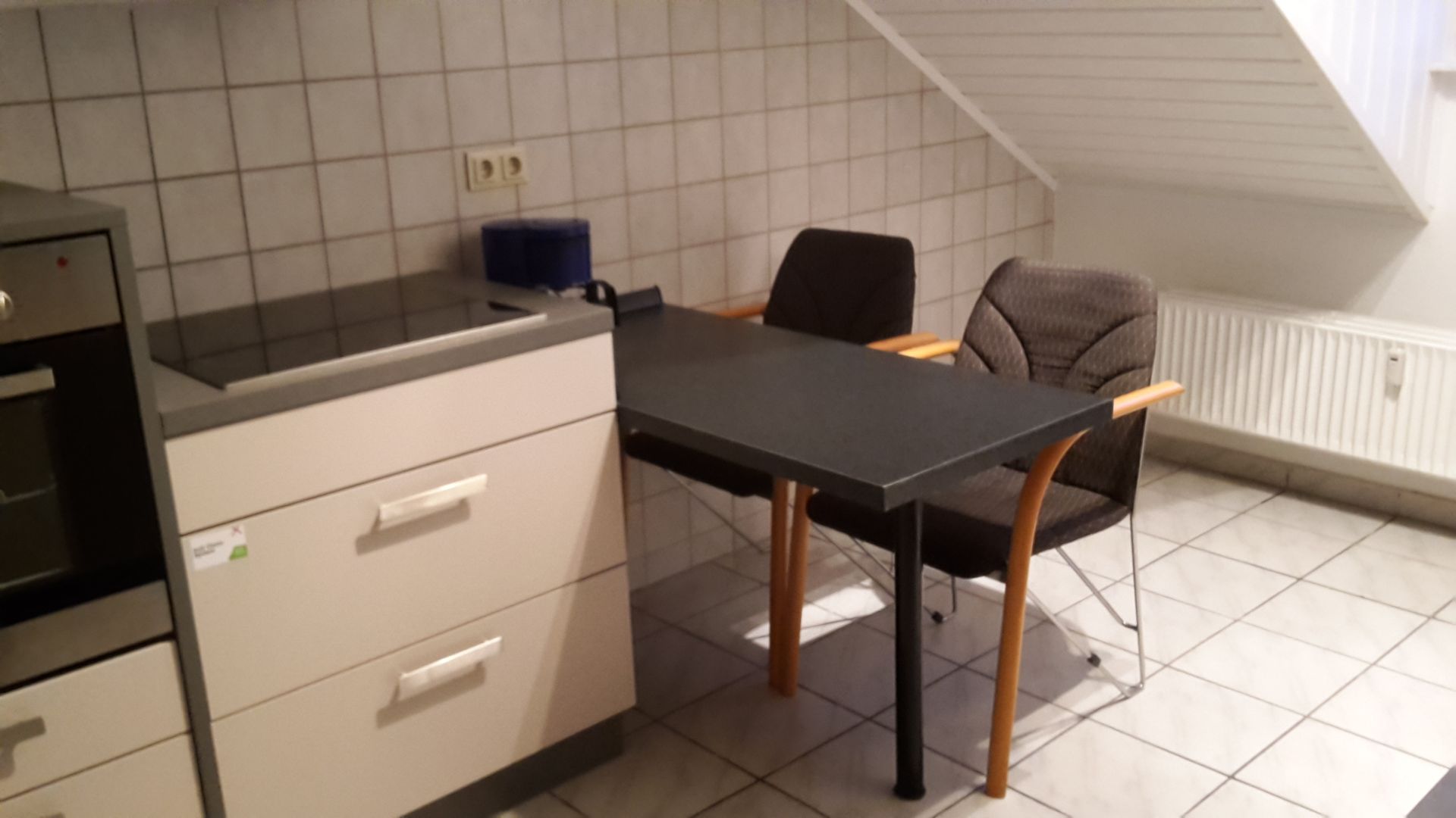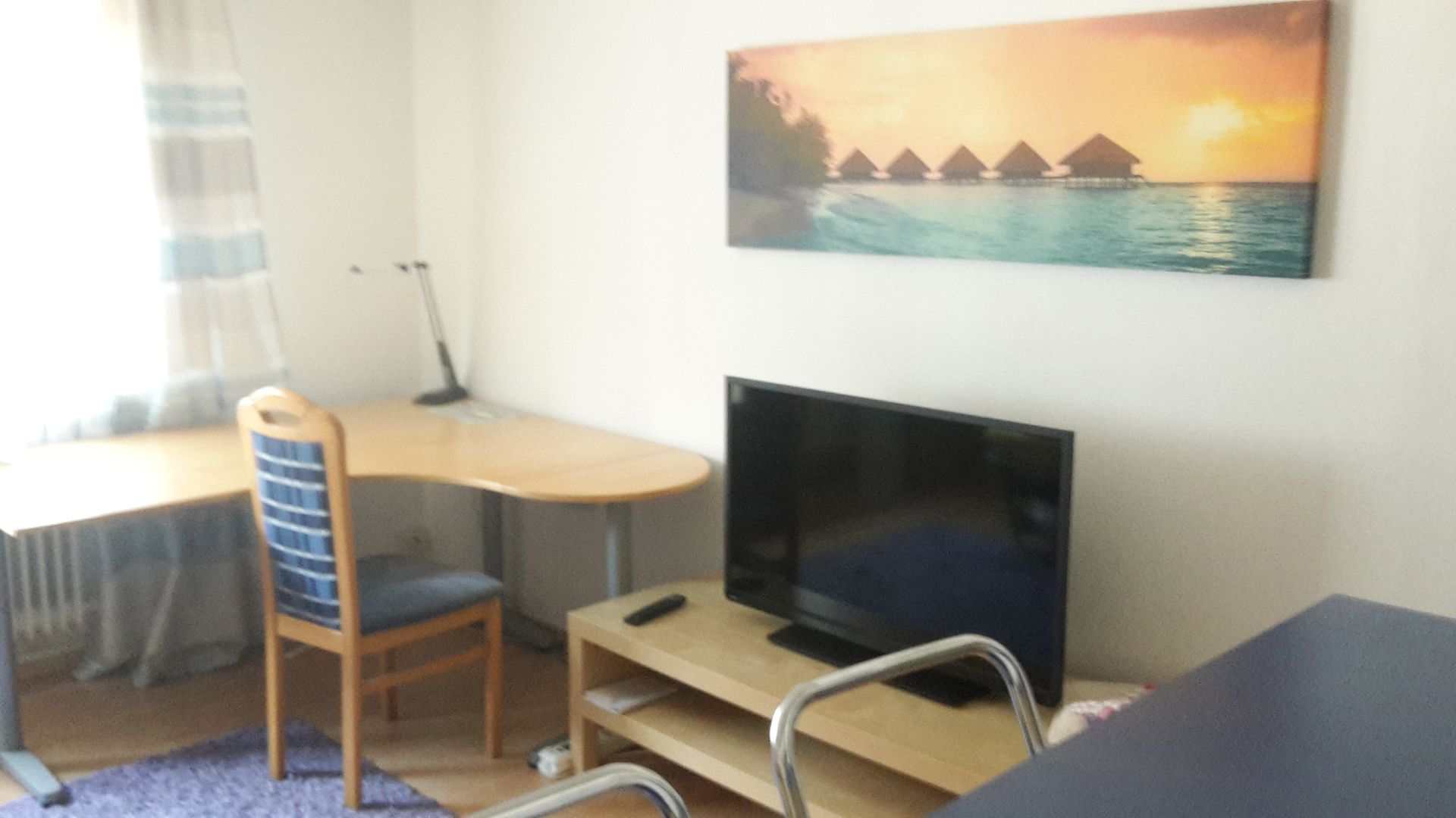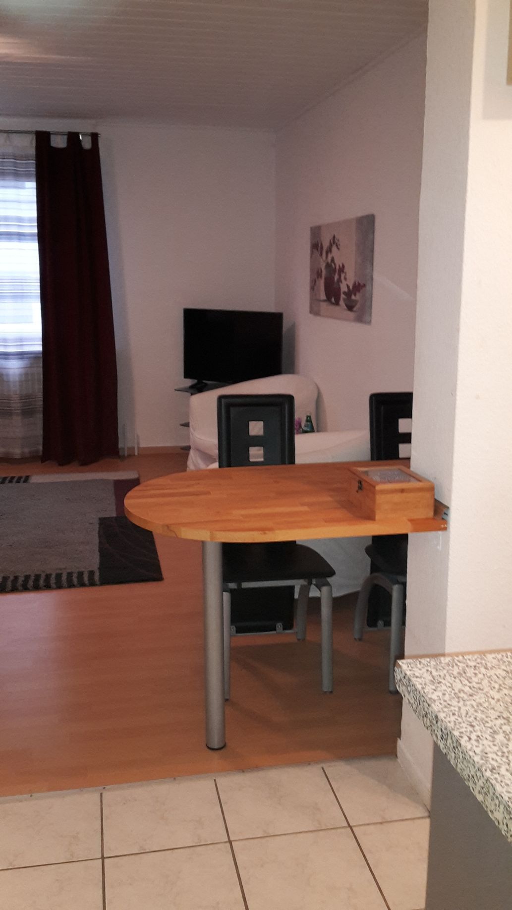 Der in unmittelbarer Nähe befindliche Küchentisch kann auch als Arbeitstisch verwendet werden, obwohl sich hierfür der im Studio befindliche Schreibtisch sich hierfür besser eignet.