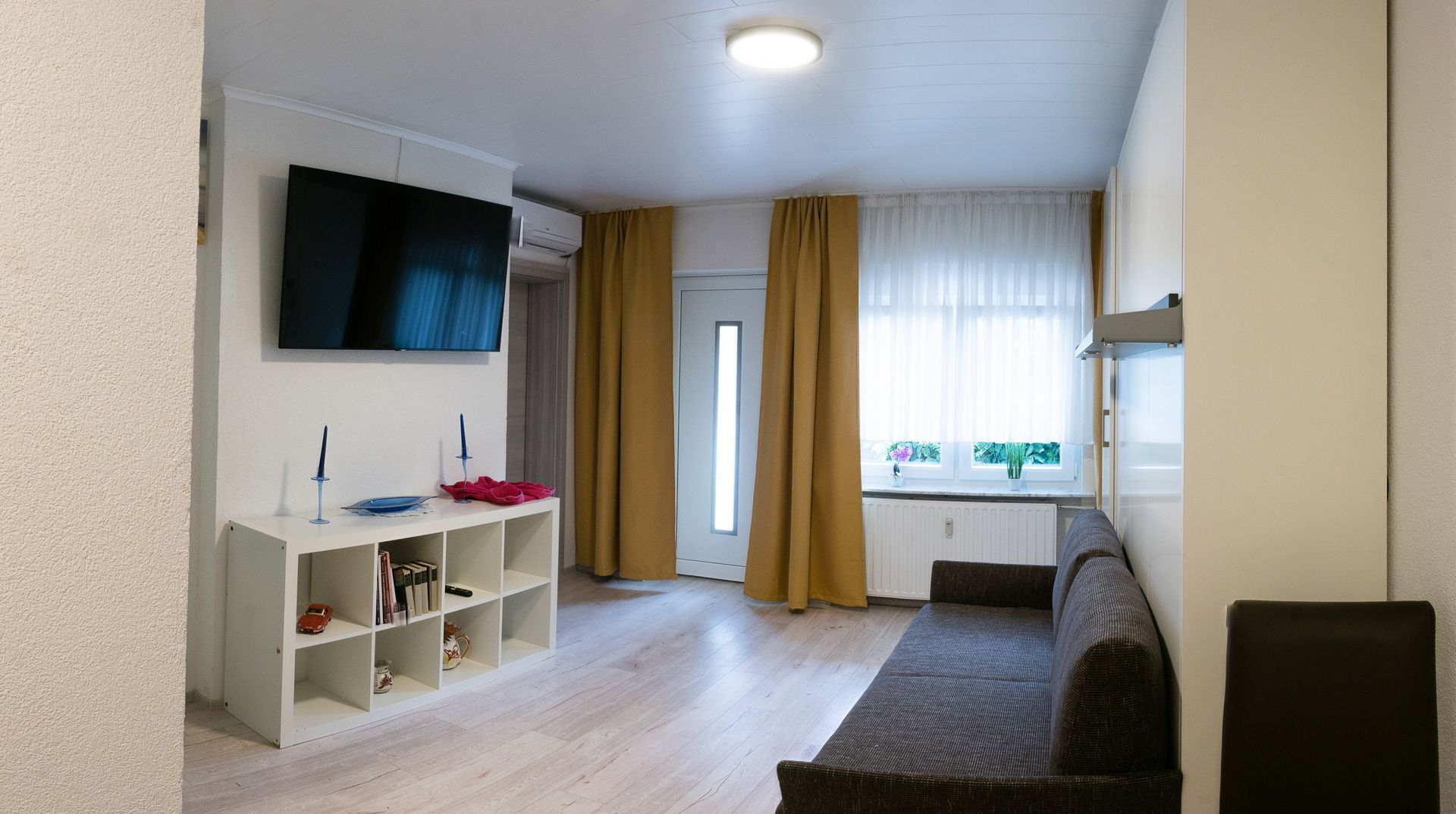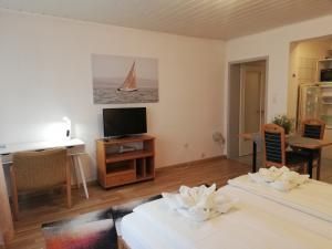 Neben dem Smart TV befindet sich auch ein Schreibtisch. Dieses Studio ist besonders gut für Gäste aus beruflichen gründen geeignet.
