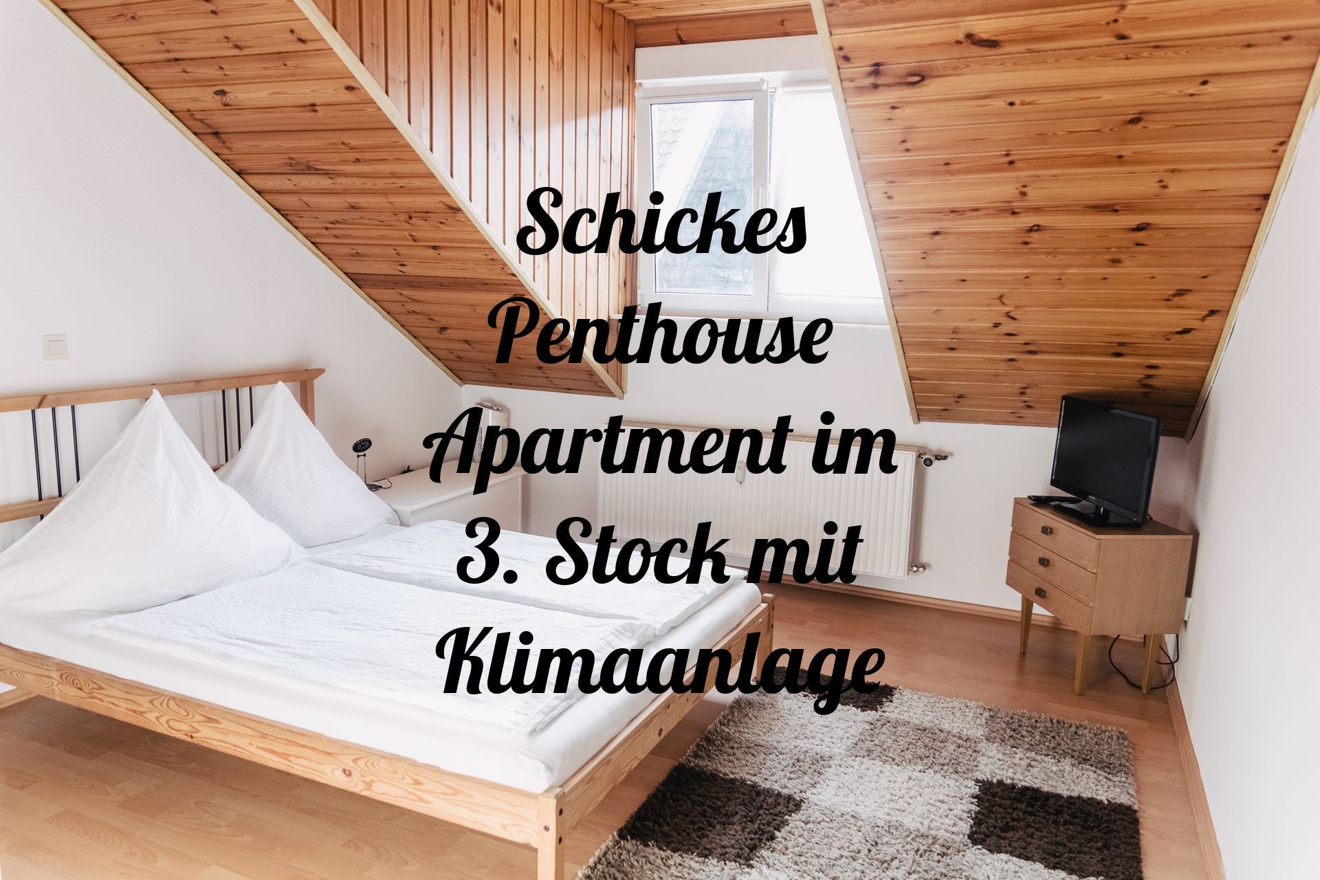 Neben dem Smart TV befindet sich auch ein Schreibtisch. Dieser eignet sich sehr gut für Gäste, die beruflich unterwegs sind.
