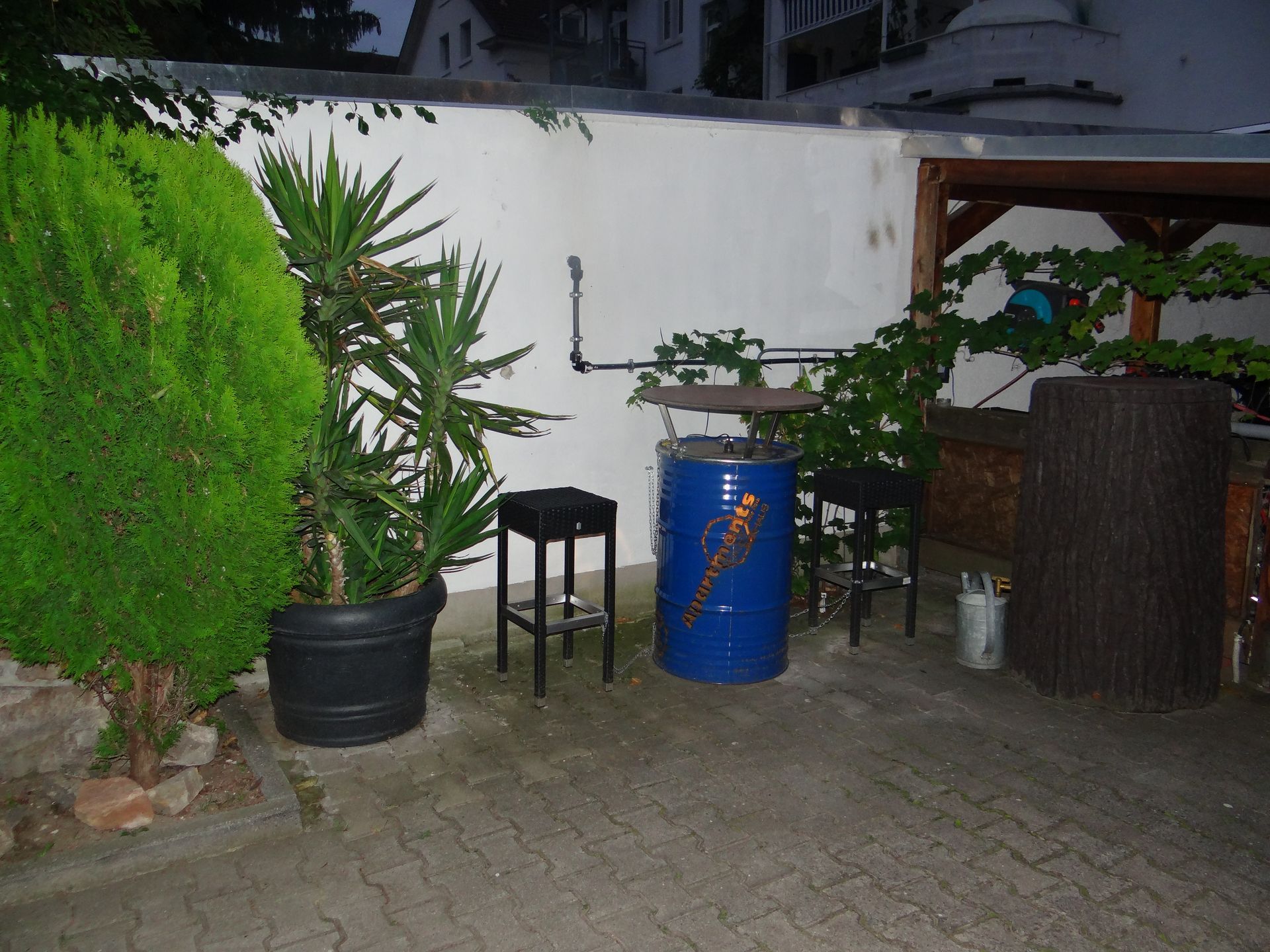Die gemütliche Sitzecke bietet genügend Raum, um dort die Feierabendzigarette zu genießen.