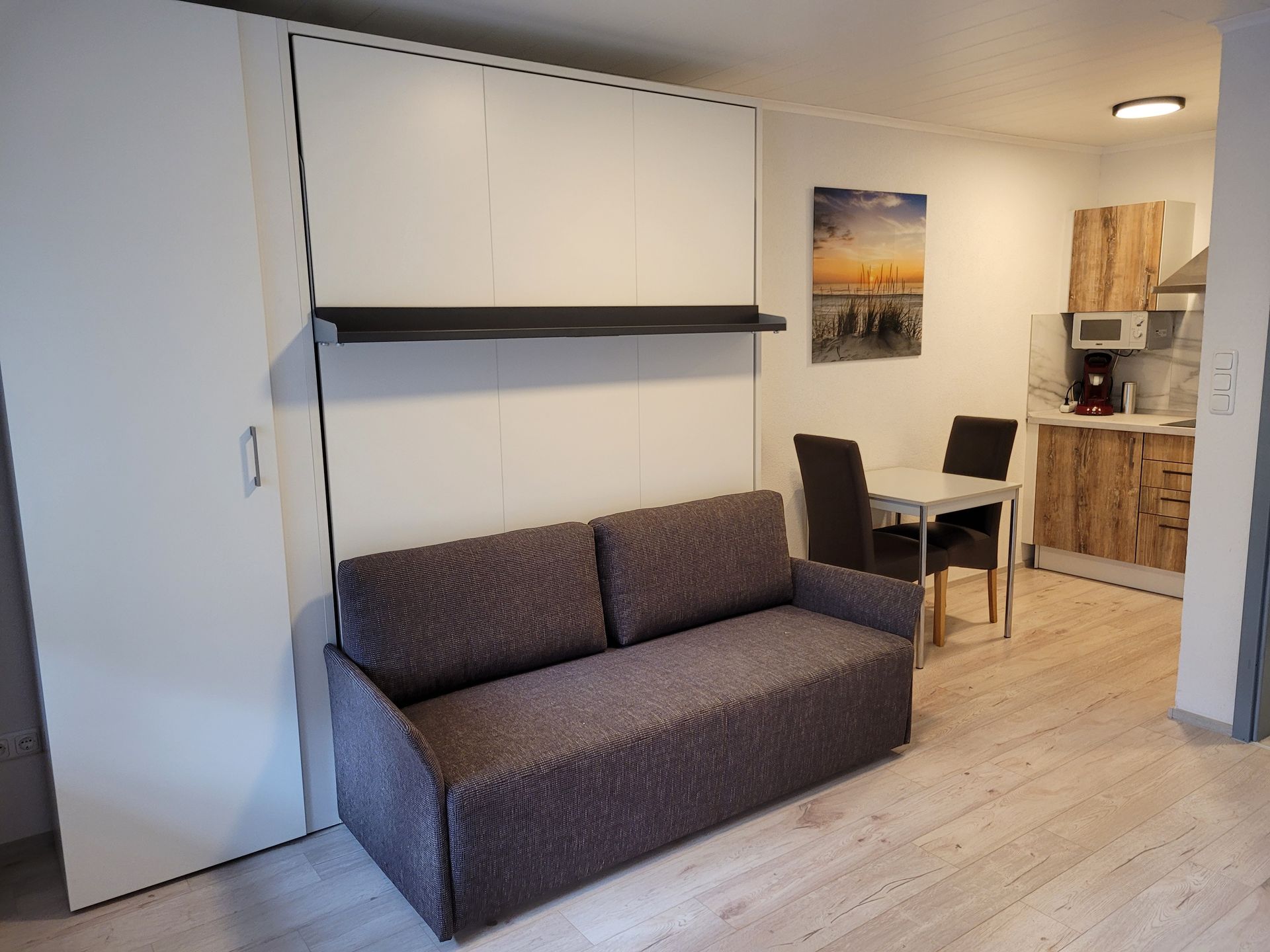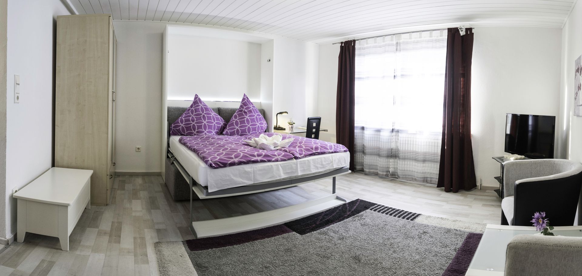 Bei Bedarf, kann das Bett auch weggeklappt werden.