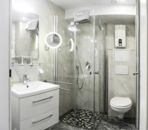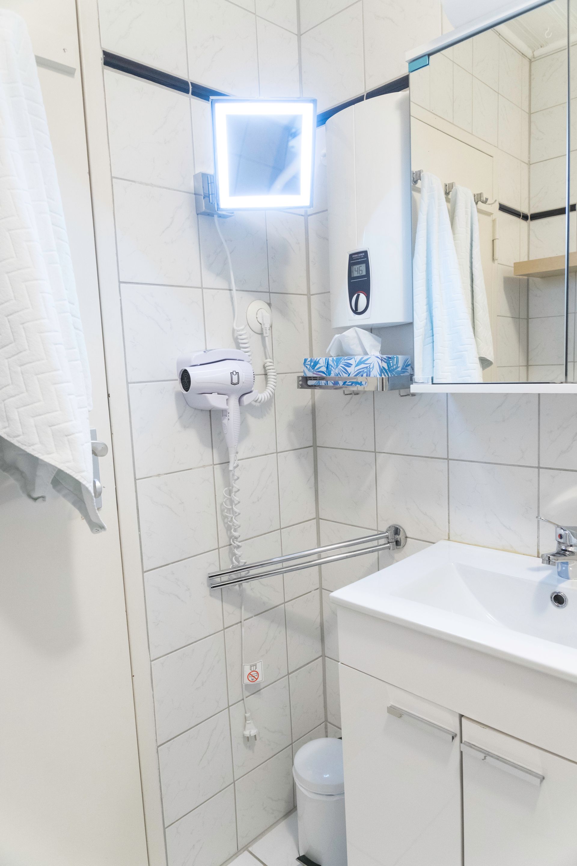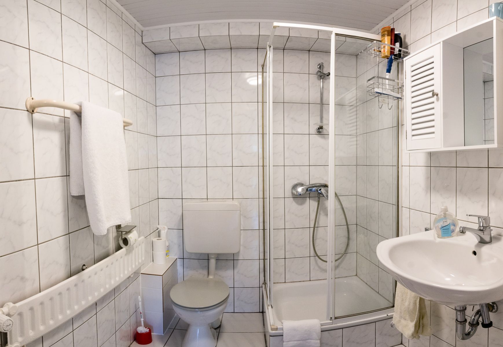Das Badezimmer ist mit allem ausgestattet, was man für die tägliche Körperpflege benötigt.