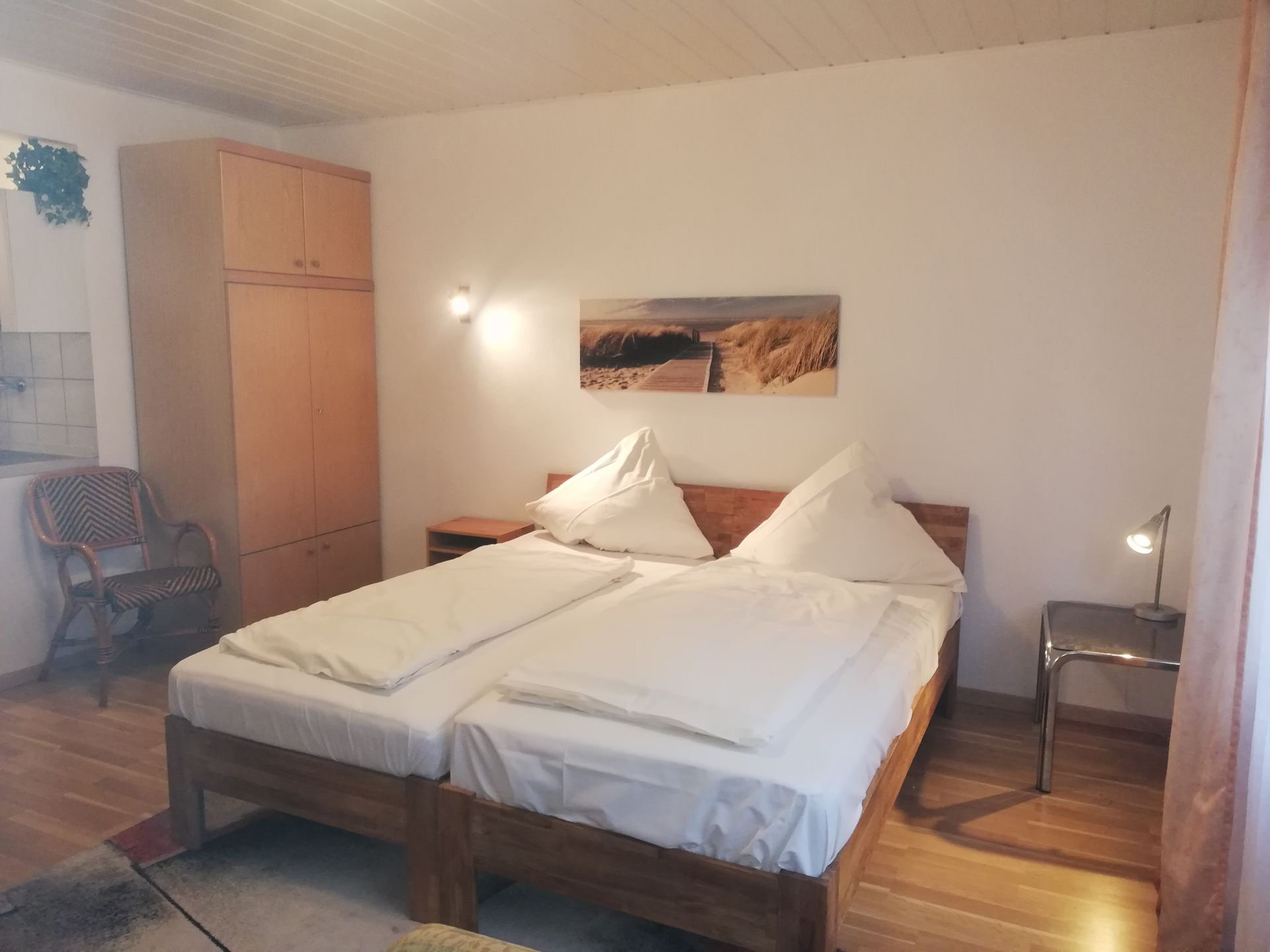 Die zwei Einzelbetten können auch zum Doppelbett zusammengeschoben werden