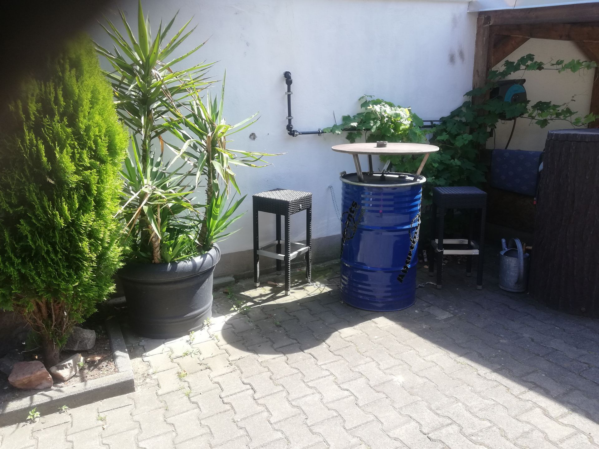 Eien gemütliche kleine Terrasse, auf der man in Ruhe entspannen kann.