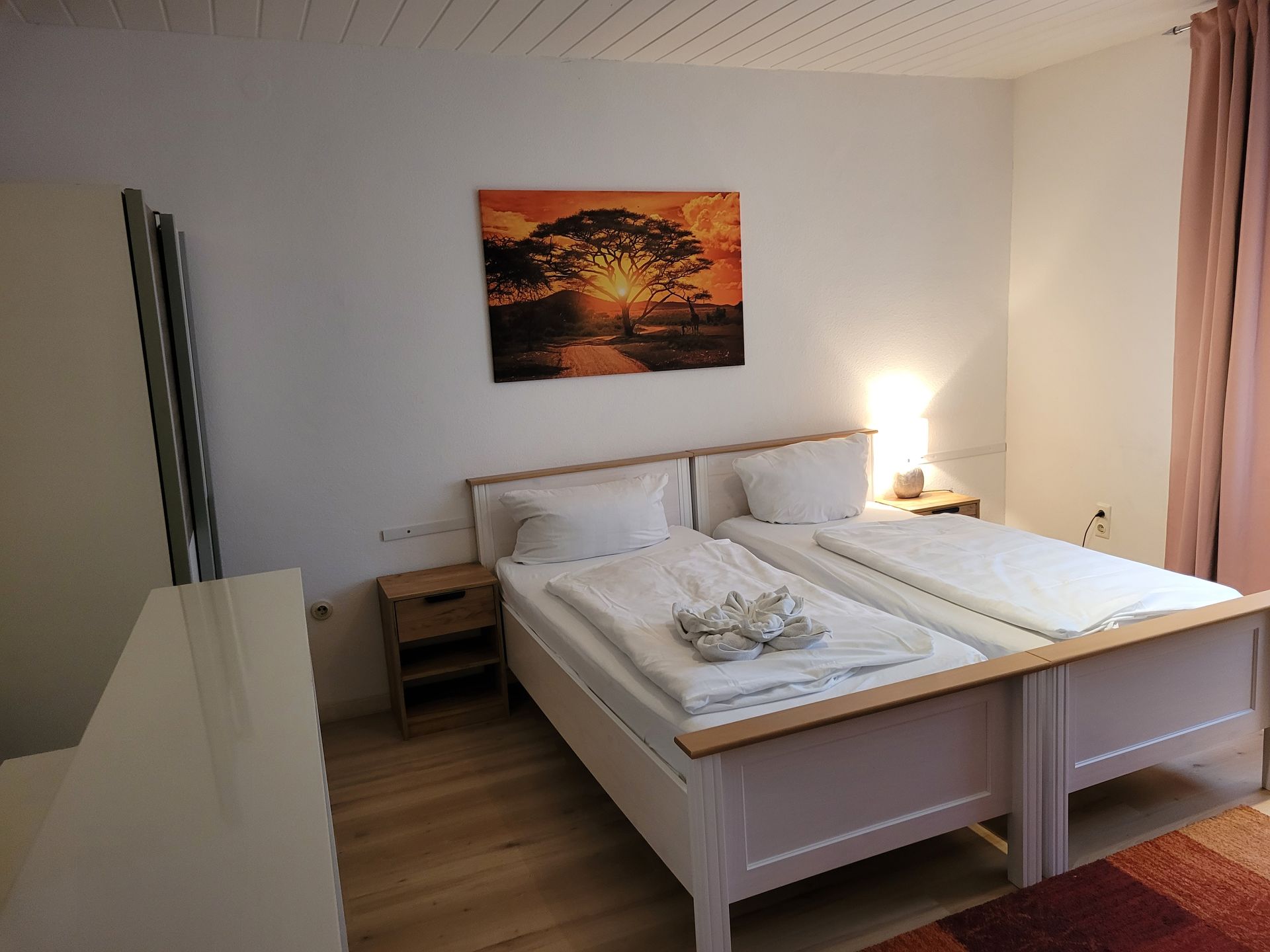 Die zwei Einzelbetten können zum Doppelbett zusammengeschoben werden.