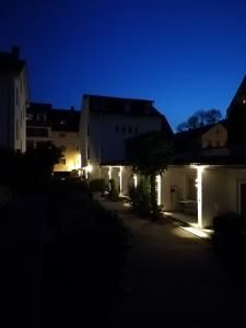 Das Apartmenthaus am Achteck bei Nacht